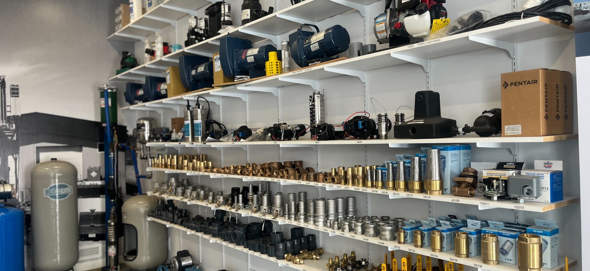 Nous offrons une gamme complète de pompes submersibles, pompes de surface, kit de filtration et raccords de plomberie.